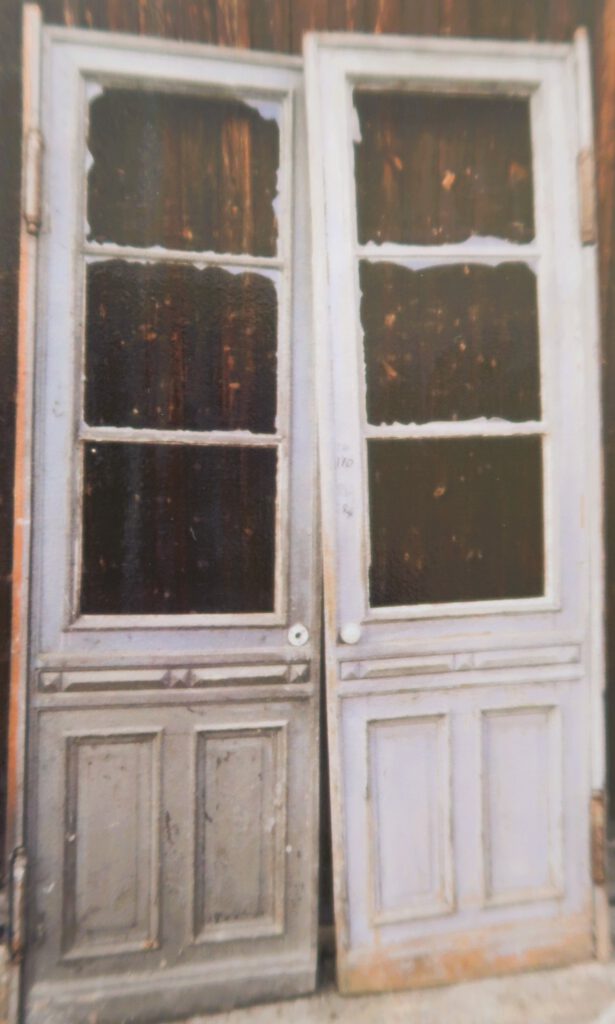 Historische Schiebetür mit großem Glasausschnitt